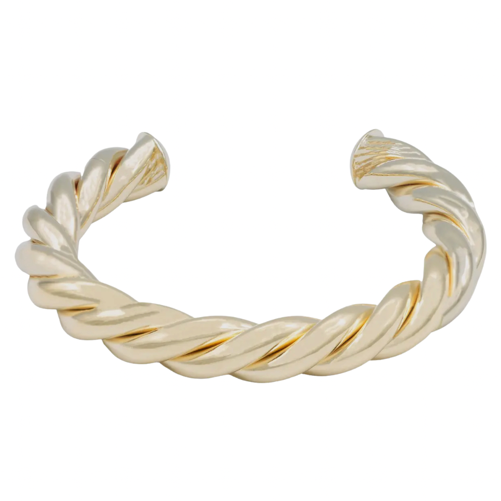 Handmade in Brazil and plated in 18k gold, this twisted cuff makes a bold yet timeless statement for any occasion.