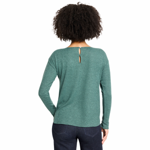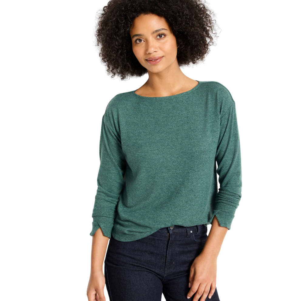 A relaxed, slightly stretchy tee with the soft feel and gorgeous drape of a blouse: the perfect change-up for your T-shirt rotation. With a cute button closure at the back neck, a relaxed bateau neck, and roomy dropped shoulder silhouette. Pairs perfectly with your favorite jeans.